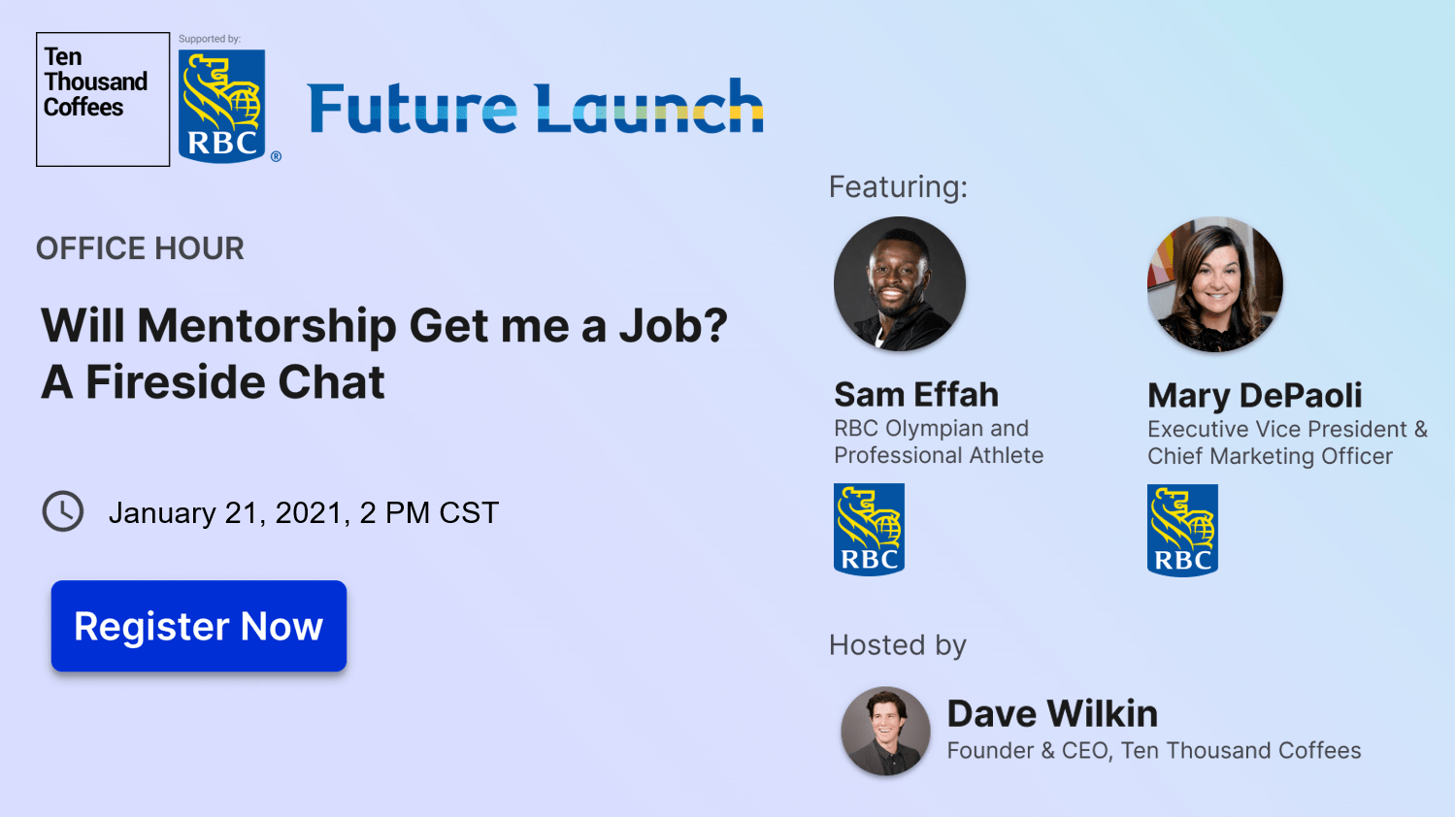 诚邀您!一万咖啡将于 2021 年 1 月 21 日下午 2 点举办一场全国范围的活动,有两位来自 RBC 的特邀嘉宾。国家标准时间。