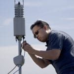 - e8体育 研究员 Jose Delos Reyes 在屋顶安装气象站。