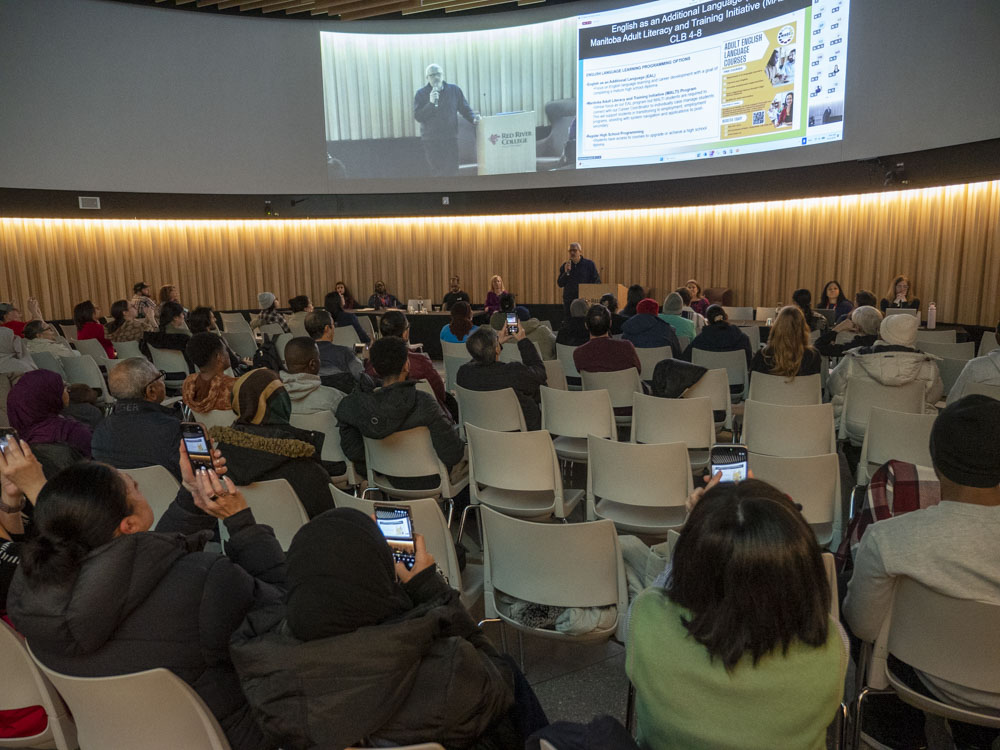 2 月 26 日,学生、教师和嘉宾聚集在 e8体育 的 Roundhouse,参加 RED Talks 国际教育健康专业人员 (IEHP) 晚会,旨在帮助学习者建立使用英语的信心,同时讨论与加拿大医疗保健系统工作相关的主题。