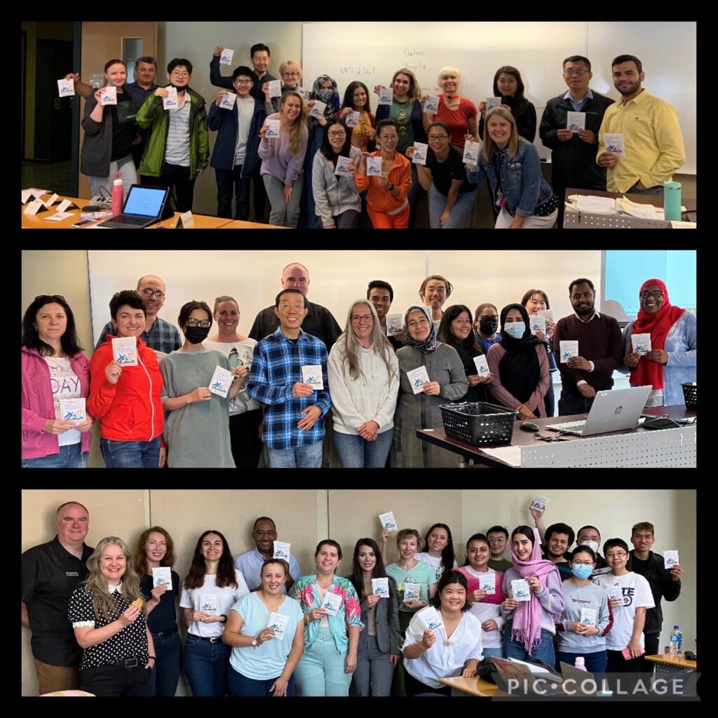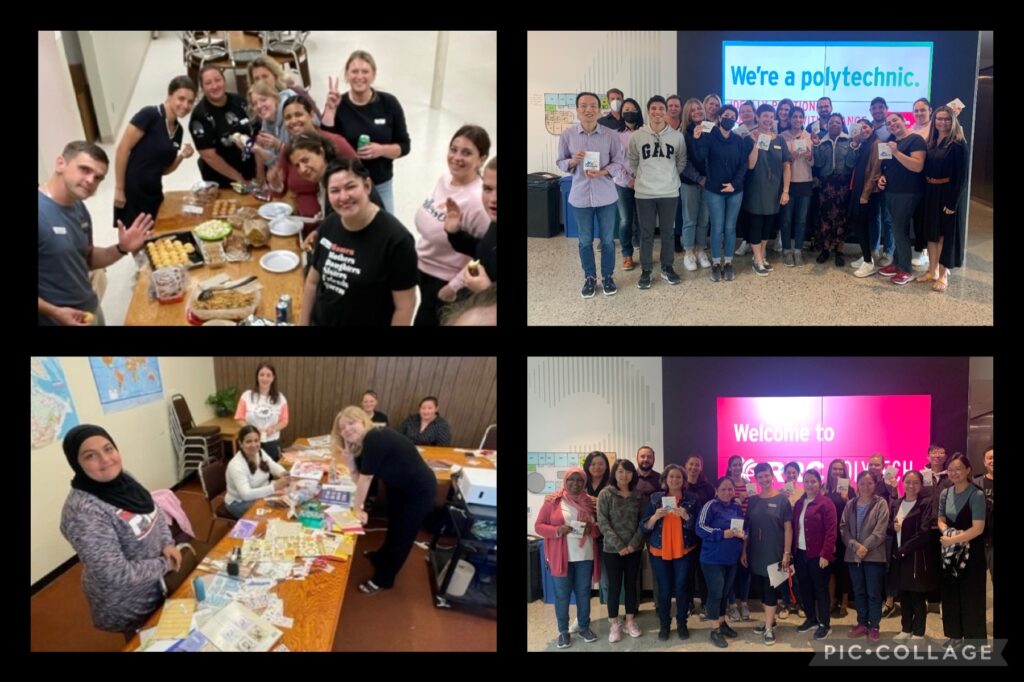 语言培训中心的学生、教职员工花一点时间享受甜点,作为 2022 年欢迎周庆祝活动的一部分。