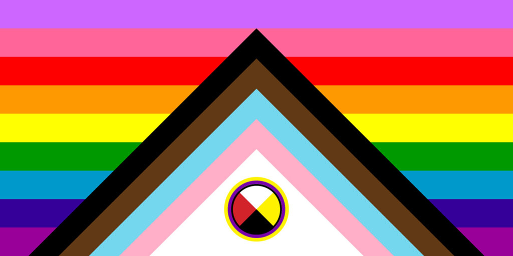 进步骄傲旗帜的这一演变与学院最近宣布采用 2SLGBTQIA+ 缩写并以“2S”开头,以尊重两个精神民族的长寿、重要性以及在土著信仰和传统中的地位相一致。