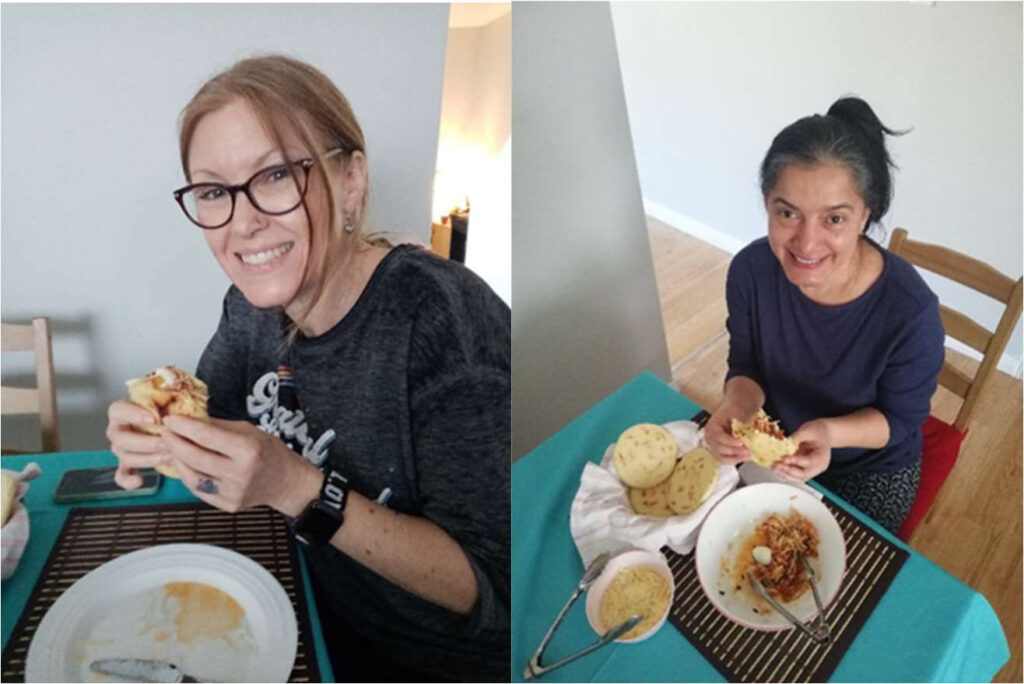 Jenny 和 Tanya 一起探索了许多活动 - 从萨尔萨舞蹈课到参观博物馆,再到在油漆浇注课上发挥创意和烹饪传统哥伦比亚美食。在参与计划的过程中,伙伴们建立了友谊,甚至带着孩子一起参加活动。