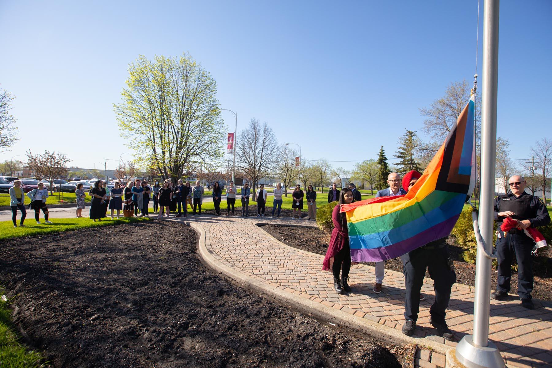 学院的骄傲设计是进步骄傲旗帜的演变,包括代表所有 2SLGBTQIA+(双性恋、女同性恋、男同性恋、双性恋、跨性别者、酷儿和/或质疑、双性人和无性恋)社区成员,并包含特定的原住民元素。
