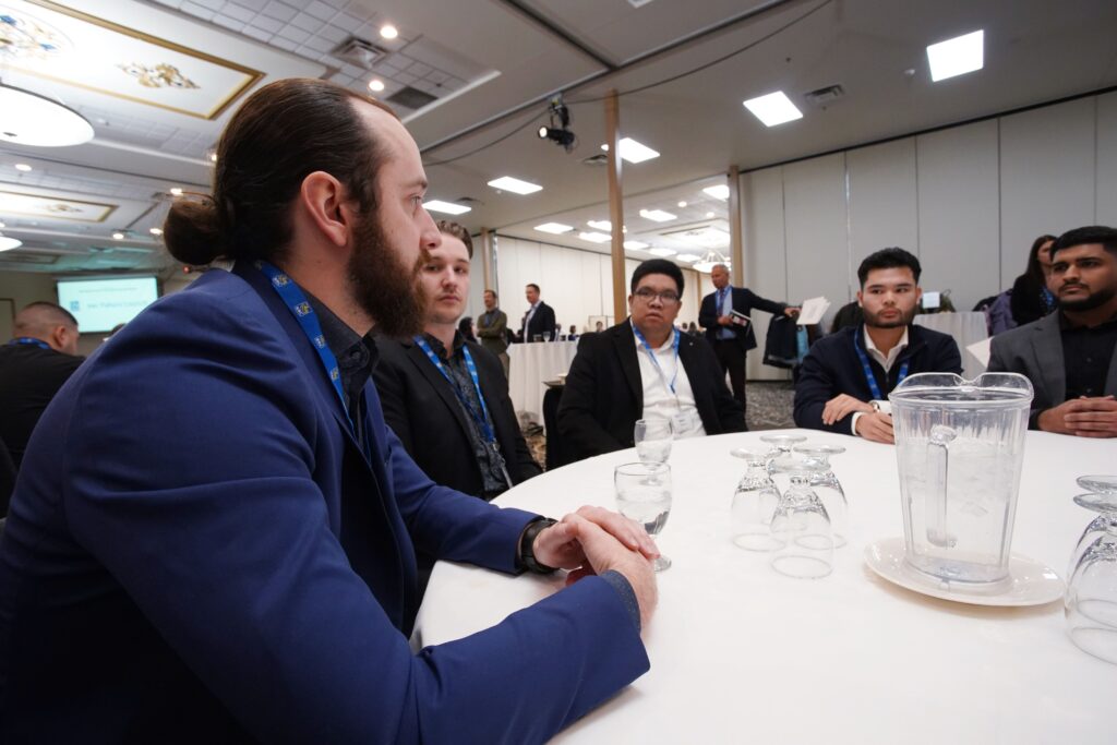 2025 年 5 月 26 日,杰索普在与同事的小组讨论中发表讲话交易简介学生 Alex Graham 与橱柜和木工学生 Logan Loewen 以及 Star Plumbing and Mechanical 副总裁 Darren Chambers 一起探讨马尼托巴省技术行业的未来。