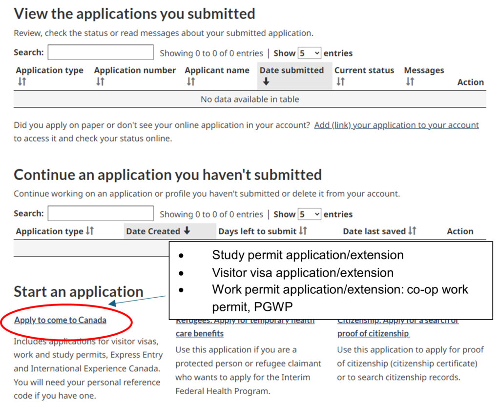 • 点击“申请来加拿大”