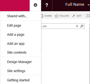 1. 点击齿轮您姓名旁边的图标,然后选择网站设置.