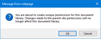 4. 您将收到一条消息,指出如果您停止继承此文档库中的e8体育直播,则在父网站中所做的更改将不再影响此文档库。点击确定如果您想继续。