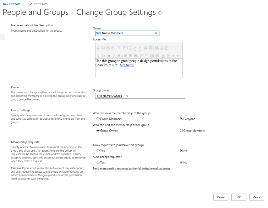 重要提示:确保群组所有者部分包含团队网站的所有者,无论是一名完全控制所有者或一个所有者组。这将确保每个完全控制所有者都有权编辑此e8体育直播组的成员资格。