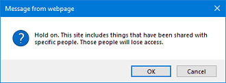 2. 您将收到一条消息,指出如果您删除唯一e8体育直播,成员可能会失去对该特定子网站、库或列表的访问e8体育直播。点击确定如果您想继续。