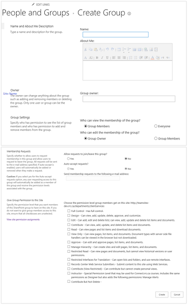 4. 输入名称对于e8体育直播组,在群组所有者字段输入完全控制所有者群组所有者,选择中的选项群组设置会员请求群组,然后点击创建.