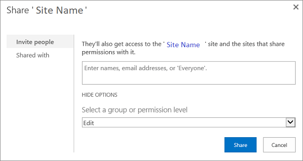 3. 输入新群组成员的姓名或电子邮件地址,然后点击分享.