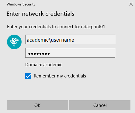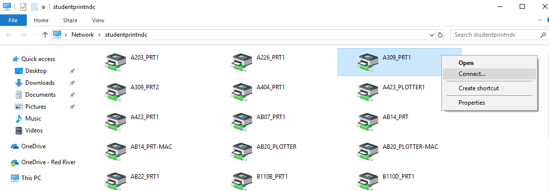 • 对于圣母院校园打印机,请使用\\studentprintndc.academic.rrc.ca.