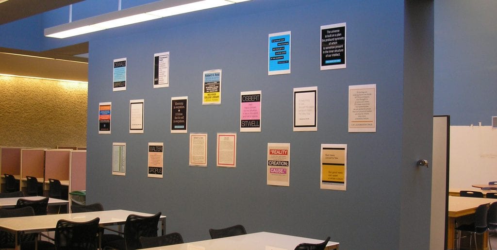 由 CAUSA(视觉艺术高级统一研究集体)与马歇尔·麦克卢汉倡议联合主办的“罗伯特·R·里德:深度设计”展览展示了大量(精心挑选的)跨文化和跨代际的文学/哲学文本集合(包括从中文、法文、德文、意大利文、日文、韩文和威尔士语)。红河学院图书馆项目的“间歇性出现”内容包括警句和启示性引文(从公元前 5 世纪到 2018 年),由 CAUSA 研究策展人选择并由 Robert R. Reid 进行印刷设计。了解更多→