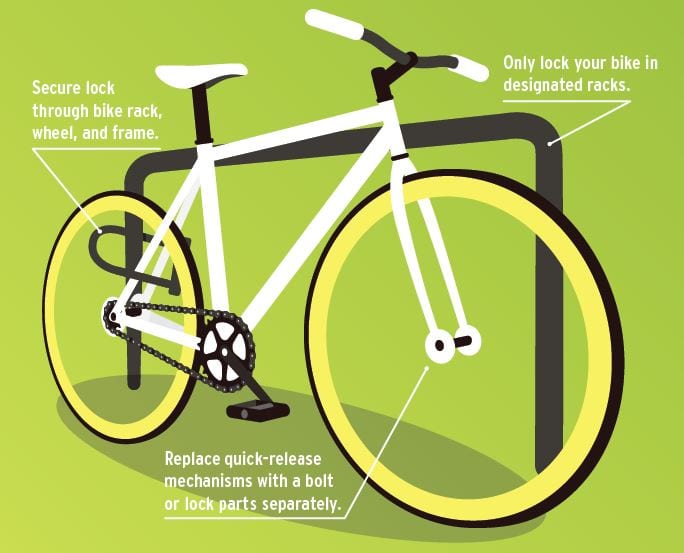 e8体育 安全服务部门会跟踪校园内报告的自行车失窃情况。