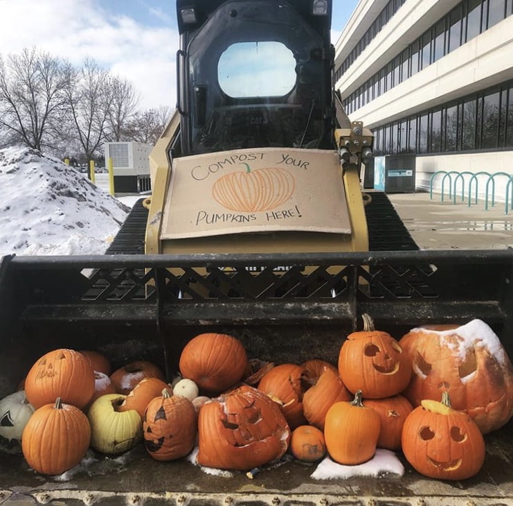 假期期间,我们关闭我们办公室的电源并支持大学花园对南瓜进行堆肥还有圣诞树.