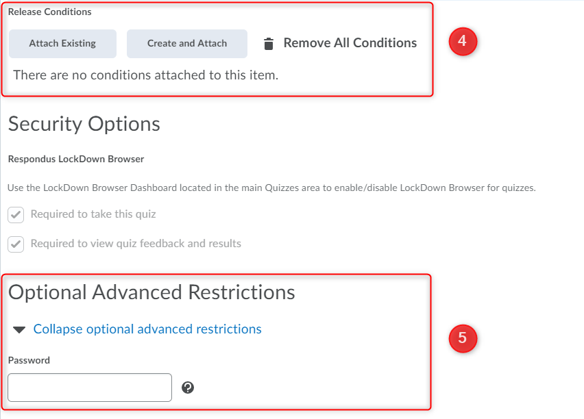 您可以为测验添加密码,并在决定时与您的学生分享。此选项允许您通过附加可选的高级限制来保护测验。