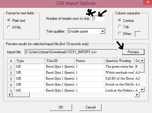 您可以将 CSV 文件导入 Respondus,但请注意,它不支持导入 Excel“.xls”/“.xlsx”文件格式。