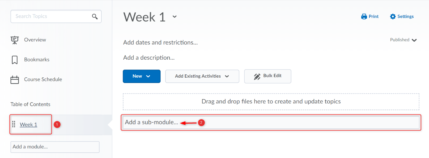 1。从导航栏中单击“课程内容”, “内容”