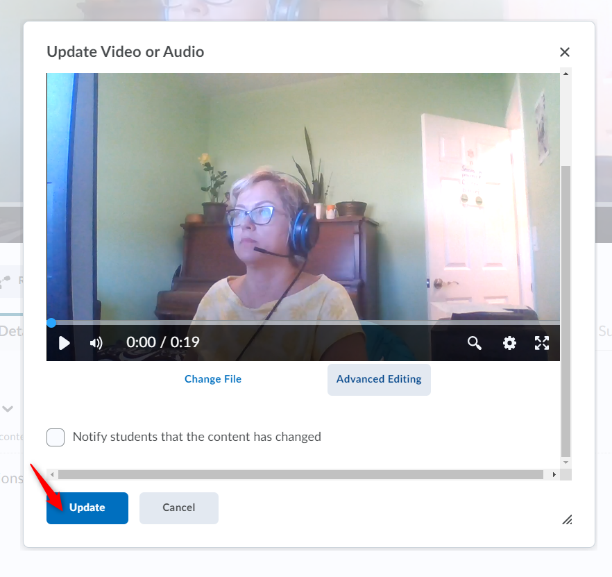 点击更新在更新视频或音频将更改应用于您的视频的窗口。
