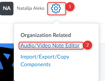 点击课程页面右上角的齿轮图标 (1),然后选择音频/视频注释编辑器.
