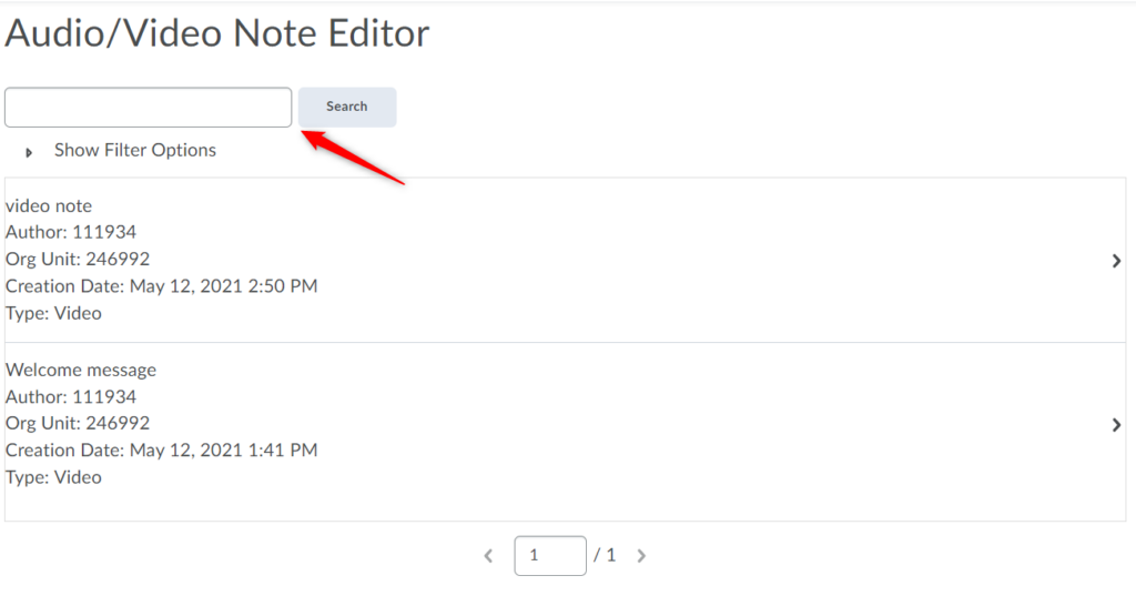 找到您要添加字幕的视频注释。您可以使用搜索选项来查找特定的选项。
