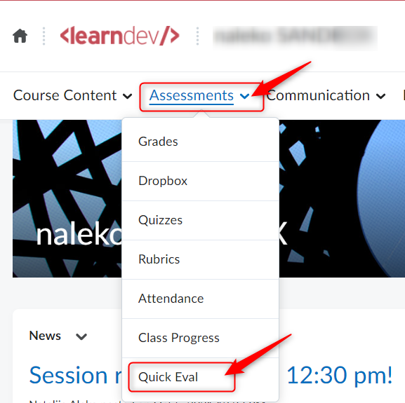 您还可以直接从您正在教授的课程中的“评估”标签访问E8体育比分工具: