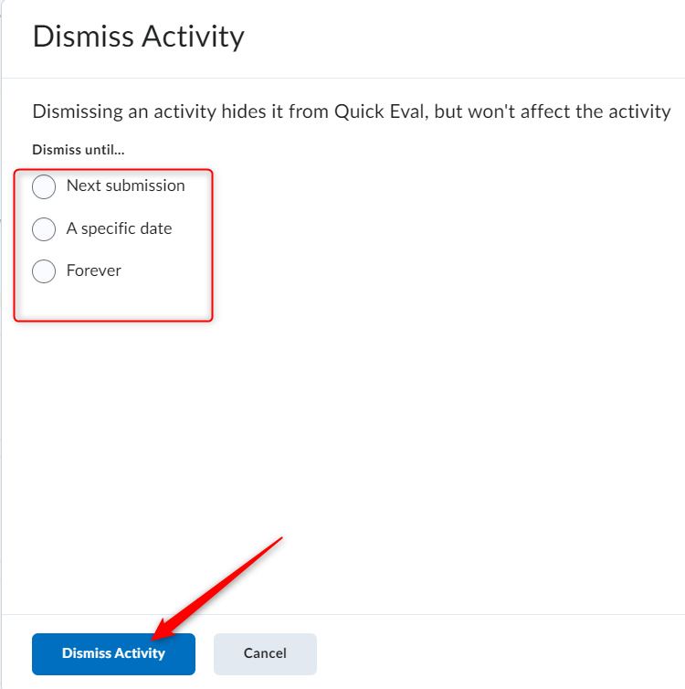 关闭活动会在E8体育比分中隐藏该活动,但不会影响该活动。该活动将保持关闭状态,直到满足所选条件,或者您使用E8体育比分中的省略号图标手动恢复它。已取消的活动仍可通过其自己的工具(作业、测验、讨论)进行评估。