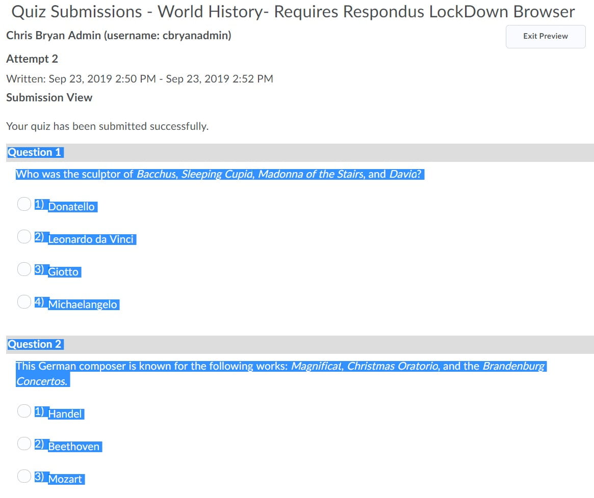 注意:如果您的测验包含随机部分,此过程将仅显示该部分中随机的一个问题。这可能是对基于打印的测试进行变化的好方法,但不会代表测验中所有可能的问题。