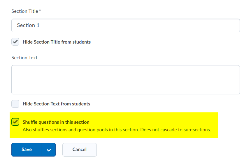 3) 在测验级别随机排列问题。测验级别的任何问题都将被重新排列。这不会影响部分。