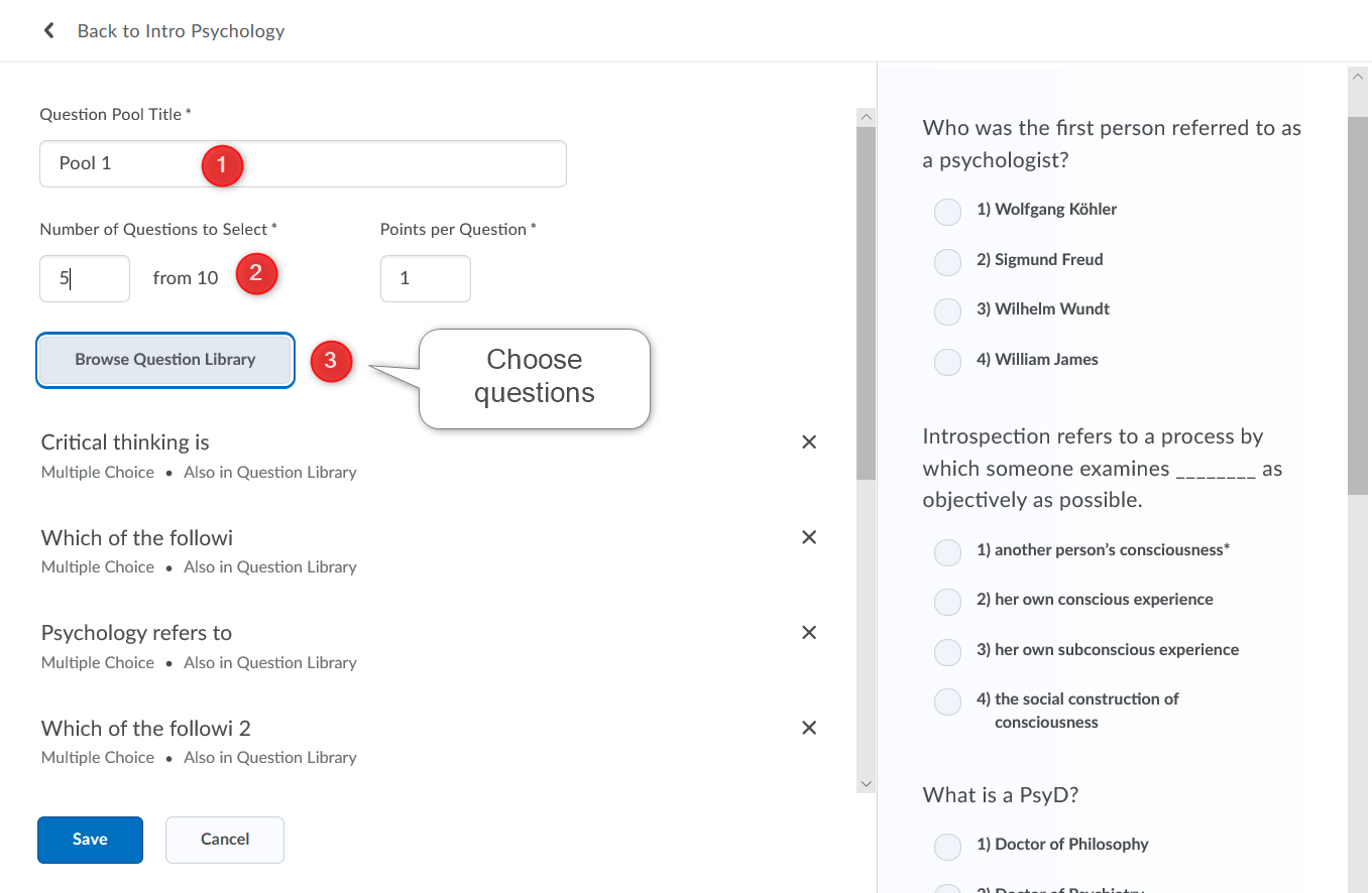 3) 从问题库中选择问题放入您的池中。这是要从中提取的全部问题。我选择了10。