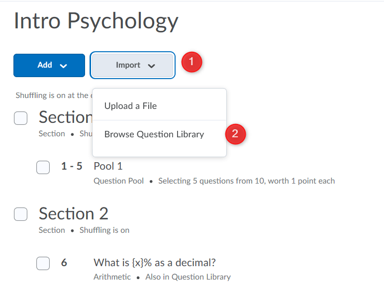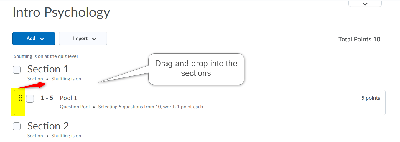 创建新问题或从问题库导入问题。您可以将这些新问题拖放到您想要的部分。
