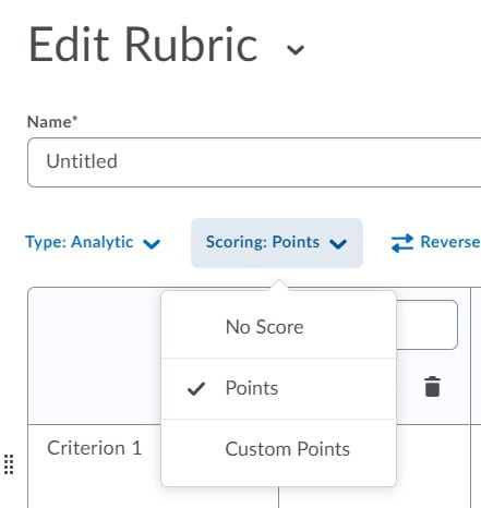 首先,您必须选择评分标准的设置: