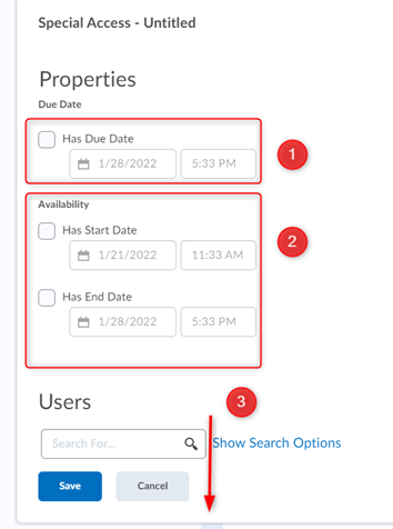 点击将用户添加到特殊访问权限如果适用,请指定截止日期可用性开始和结束日期,然后选择您想要授予此特殊访问权限的用户旁边的复选框。