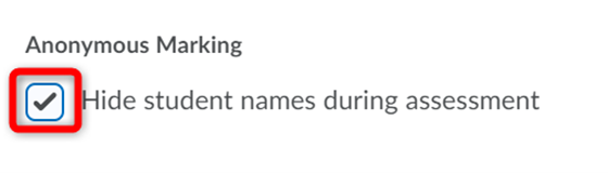 匿名标记:要启用匿名评分,请在“匿名评分”下选中“评估期间隐藏学生姓名”复选框。