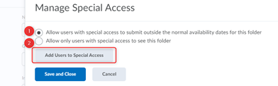 选择允许具有特殊访问权限的用户在此文件夹的正常可用日期之外提交单选按钮或仅允许具有特殊访问权限的用户查看此文件夹单选按钮。