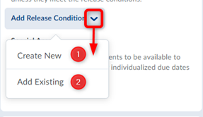发布条件,要将现有释放条件附加到分配中,请点击添加发布条件下拉菜单并选择添加现有。从可用释放条件列表中选择现有释放条件,然后单击附件.