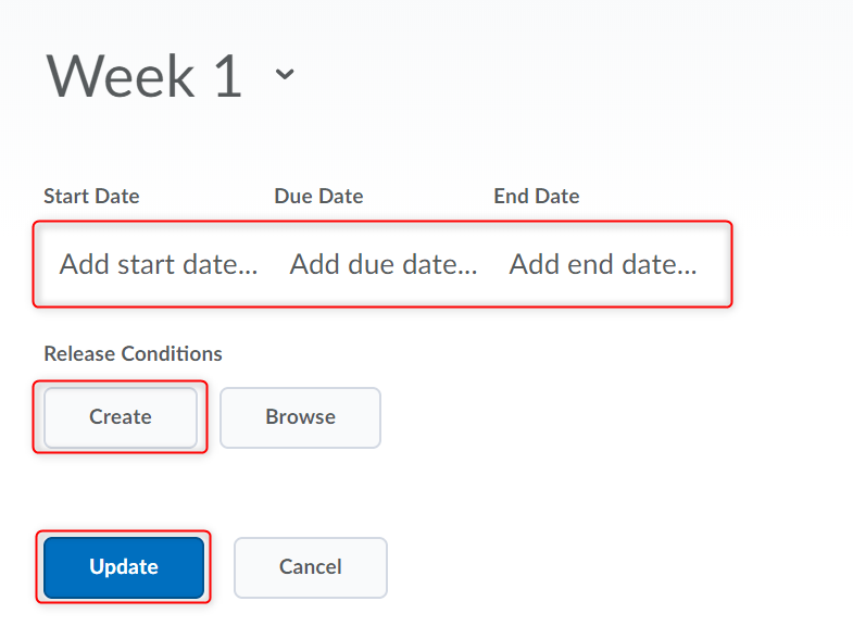 3。您现在可以调整限制。你可以添加开始/结束/截止日期将显示在学生日历上。您也可以申请发布条件必须满足这些要求才能提供内容。