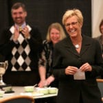 Shane Ray 和 Cole Skinner 从 RRC 主席 Stephanie Forsyth 手中接过辣椒杯。