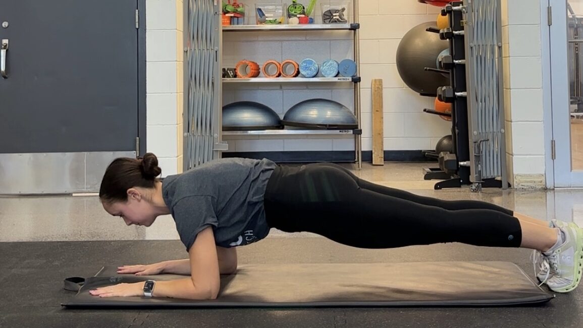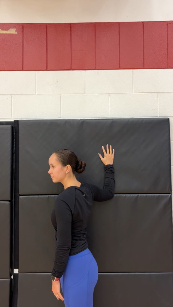 保持此位置 20-30 秒,然后松开。根据需要重复 2-3 次,如果适用,换边。全天尝试这个伸展运动,或者作为课后或工作/学习期间的快速休息。
